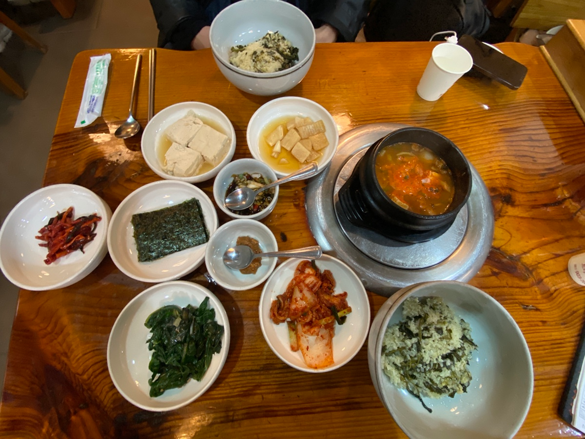청계산 근처 건강한 한끼로 최고 예전에 엄마 아빠랑 갔다가 건강하게 맛있는 맛에 반해 또 방문하게 된 청계산 곤드레집! 주말 저녁에 갔더니 역시나 웨이팅이 있었다. 청계산 등산객들도 많이 오지만 (나처럼) 등산하지 않고 그냥 찾아오는 손님도 많다. 외관은 이렇게 생겼고 문열고 들어가면 웨이팅 하는 사람들을 위한 대기석이 있다. 주차는 건물 오른쪽으로~~ 웨이팅이 10팀 정도 있어서 오래 기다리려나 싶었는데 생각보다 금방 빠졌다. 한 20분 정도 기다리고 입장! 일단 곤드레나물밥(12,000원) 2인 주문ㅎㅎ 요렇게 정갈한 한상차림이 나온다. 찌개랑 밑반찬 모두 깔끔 그리고 저 두부가 넘 맛있었다. 사진으로 봐도 고소함이 느껴지는 곤드레밥 +__+ 거의 밥 반 곤드레 반이다. 저기 있는 양념간장이랑 된장을..